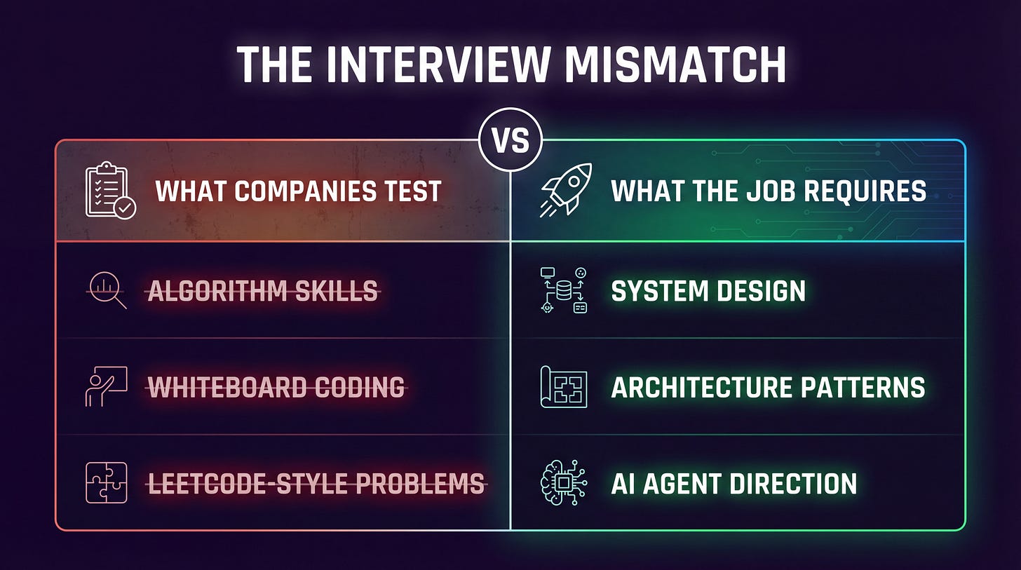 There’s a fundamental mismatch between what companies test for and what the job actually requires now. And that mismatch has forced me to ask a harder question: